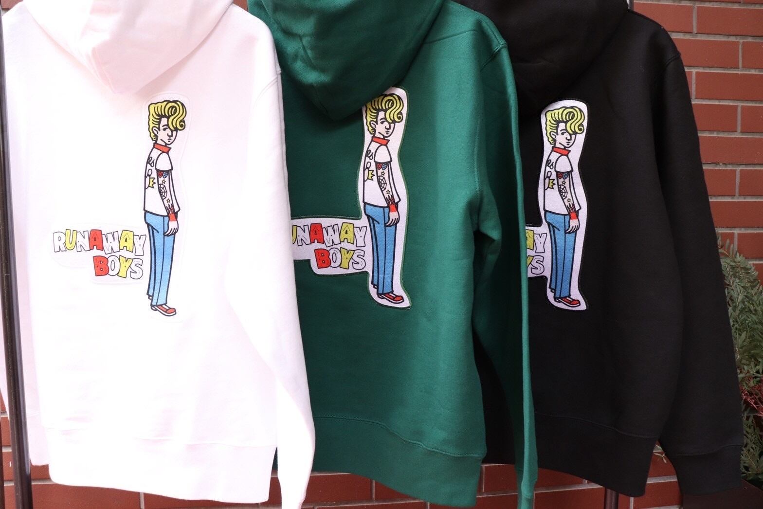 今期のテーマ『RUNAWAY BOYS』の象徴とも言える”BRIAN”が目を引くパーカ。
